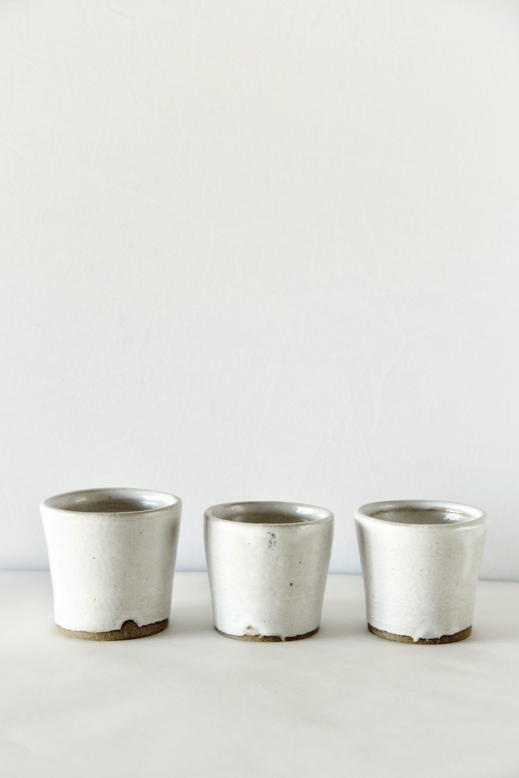 Set of 3 Small White Ceramic Cups –
